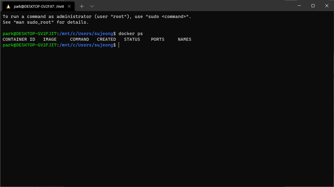 🎉이제 WSL2을 통해 도커를 사용할 수 있는 환경이 마련되었습니다.🎉